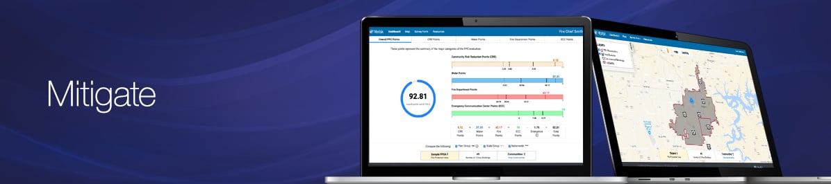 Public Protection Classification (PPC®) dashboard for scores specific to your community’s fire and water departments, emergency communications center, and Community Risk Reduction program; plus, benchmark scores with comparisons to peer group, state group, and nationwide group.