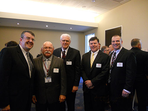 Pictured at the conference are Thomas L. LaBelle, executive director, New York State Association of Fire Chiefs; Butch Cobb, national director, ISO Community Hazard Mitigation; Dr. Denis Onieal, superintendant, National Fire Academy; Bill Raichle, president, Verisk Insurance Solutions – Commercial Property; and Bob Andrews, vice president, ISO Community Hazard Mitigation.
